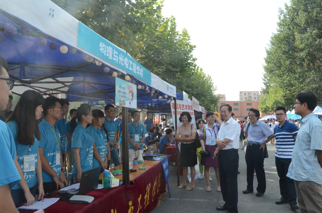 九月开学季,校园里充满了阳光和活力,为了迎接2015级新生入学,引导新生尽快融入大学生活,物理与光电工程学院组织策划了“成长路上,你我同行”的主题2015级新生入学季活动,成长LEADER团队、学生志愿者、团委学生会、自强社、学生党支部、学院心协,高年级物理学子以不同方式积极参与到迎新工作中。经过精细准备、周密策划,在全院师生的共同努力下,物理与光电工程学院各部门各司其职,圆满完成了214名本科新生的入学报到工作。