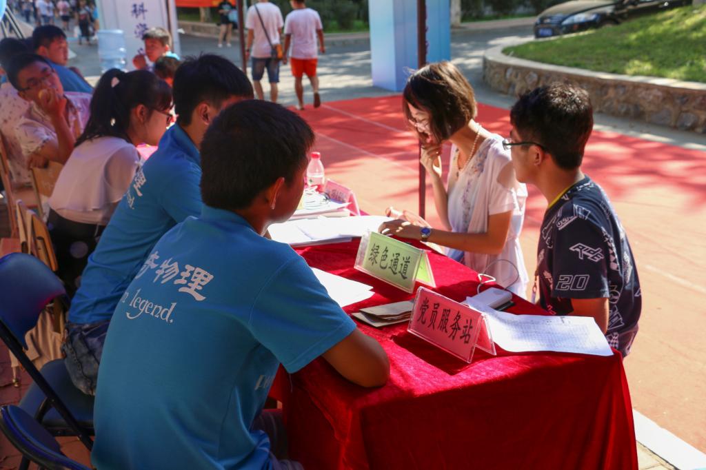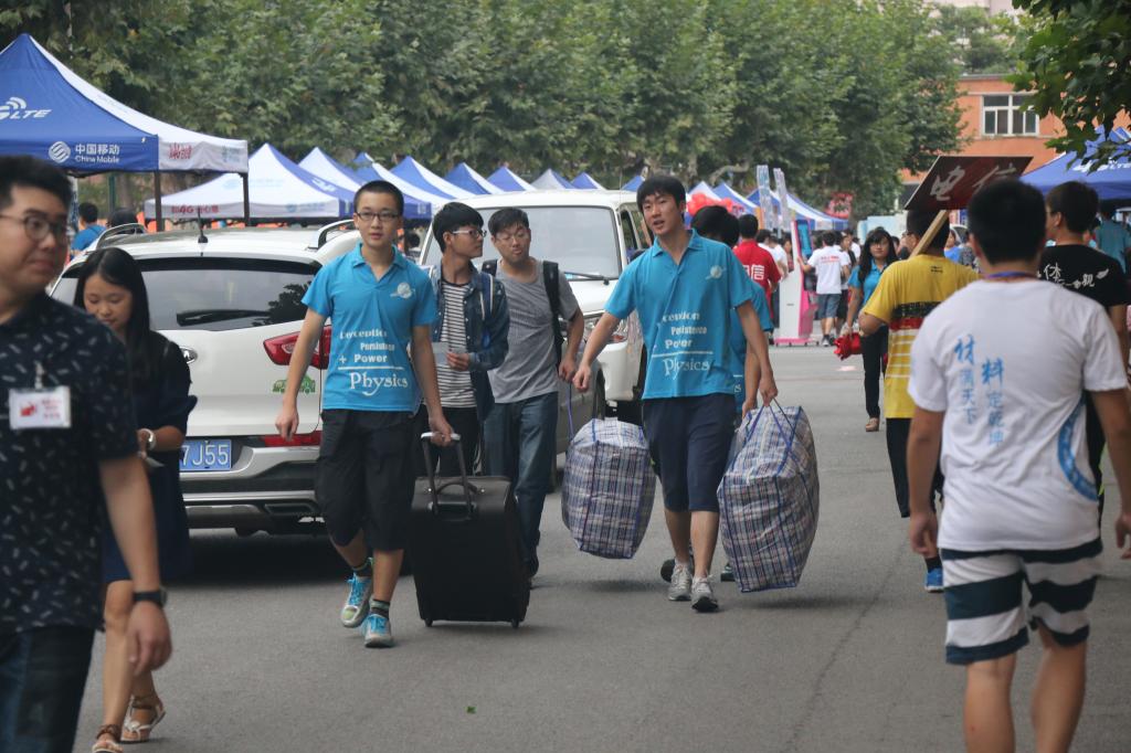 120余名学生志愿者,担任迎新工作主力军。他们提前一周结束假期回到学校,打扫新生宿舍,设计制作宣传材料,布置新生报到点与注册点。9月5号和6号的迎新现场,身着蓝色院衫的他们,是西山最靓丽的风景。搬行李、做引导、搭帐篷、搬桌椅、挂条幅、答疑解惑,他们用热情和汗水,赢得了家长和新生的赞誉。