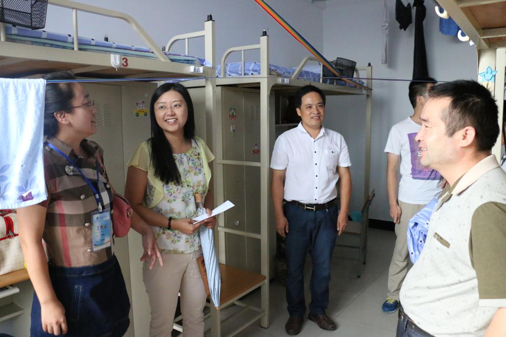 入学报到日,学院领导班子成员深入新生宿舍开展走访,看望新生和家长,了解报道情况。经物理与光电工程学院“青年科学家发展联谊会”临时党支部选拔推荐,7位优秀教师成为学院2015级新生班主任。从被确定为班主任,7位老师就开始四处取经:“95后”学生有什么特点、第一次班会要怎么开、有学生有专业情绪怎么办,老师们像对待科研一样开始准备班主任工作。报道第一天,班主任们早早来到迎新现场,接待新生和家长。担任物1502班班主任的王乔老师,提前就联系好了学校专业团体辅导师,准备为班级开展第一次团体训练。