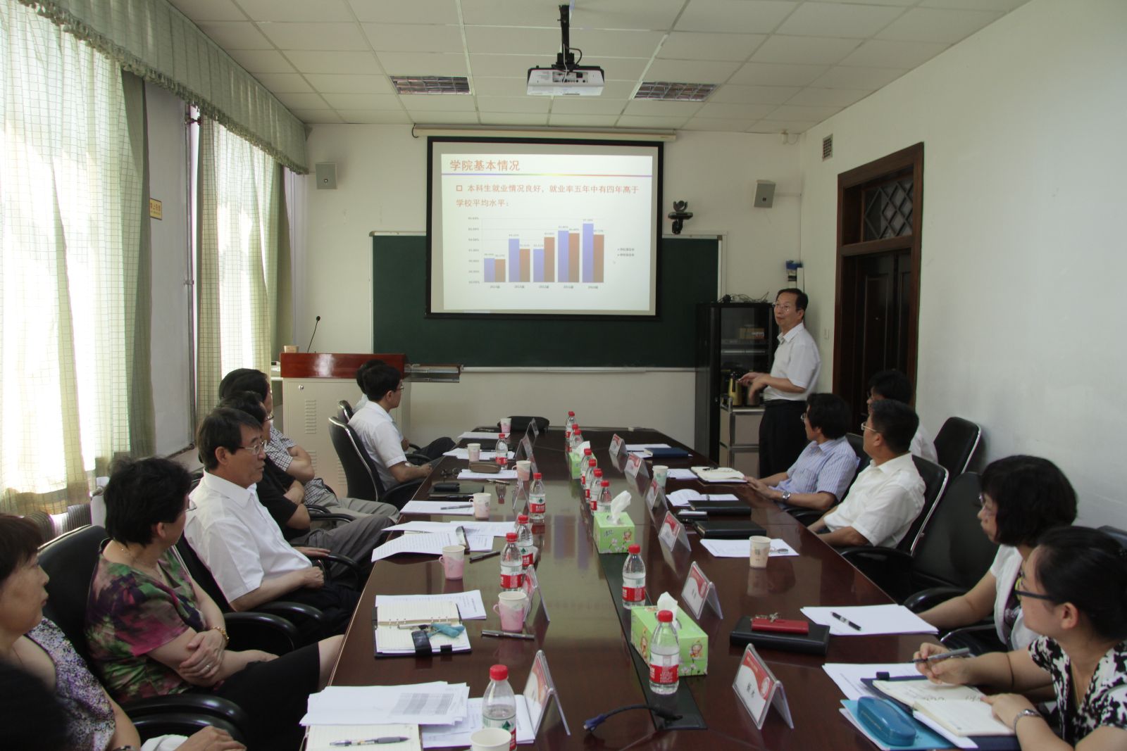 学院院长赵明山同志从学院自然状况、学生人才培养、招生就业、师资队伍建设、学科建设、科学研究、国际合作与交流等方面做了学院工作介绍,梳理总结了学院在高端人才引进、国家重大科技奖项常年空缺、空间不足制约学院发展等当前学院办学遇到的瓶颈与困难。学院党委书记刘金远同志对学院党委特色工作进行了重点介绍。学院其他领导结合分管工作,进行了相应补充。参会的机关单位领导,对学院人才培养、科研成果、发展规划、党务工作等方面提出了意见。