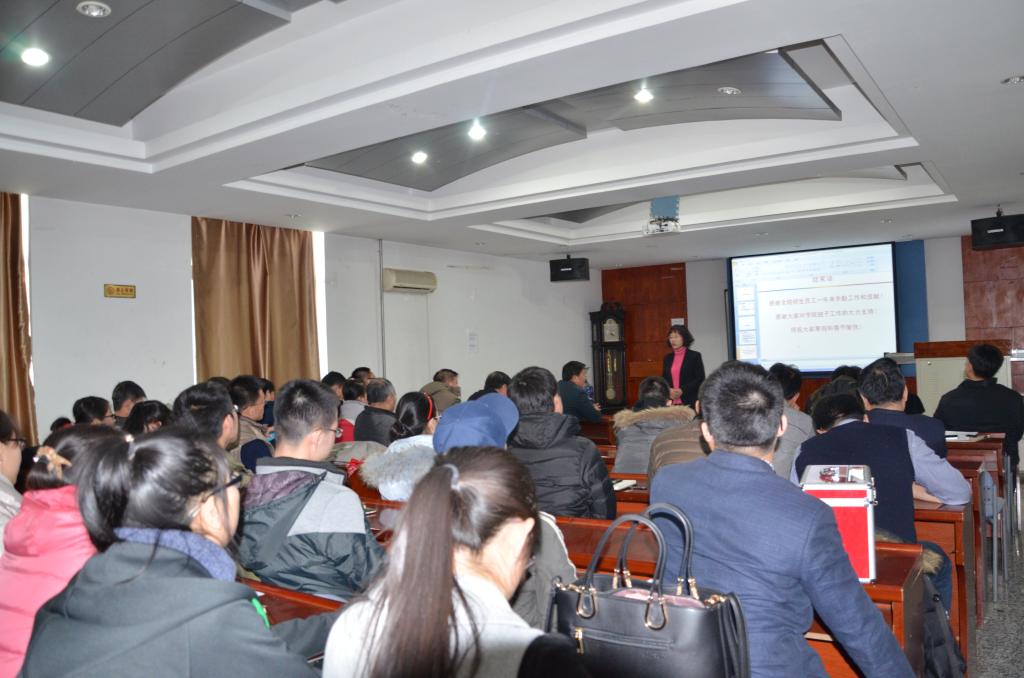 按照学校《关于2015年学校中层领导班子述职述廉及干部考核等工作安排的通知》有关要求, 1月13日,学院在系楼322学术报告厅举行领导班子年终述职述廉暨干部考核大会。学院领导班子成员、党委委员、学院科级以上干部、副高职以上人员、近期入校参加工作教师、学生代表等共计70余人参加会议。会议由学院党委副书记副院长常亮同志主持。