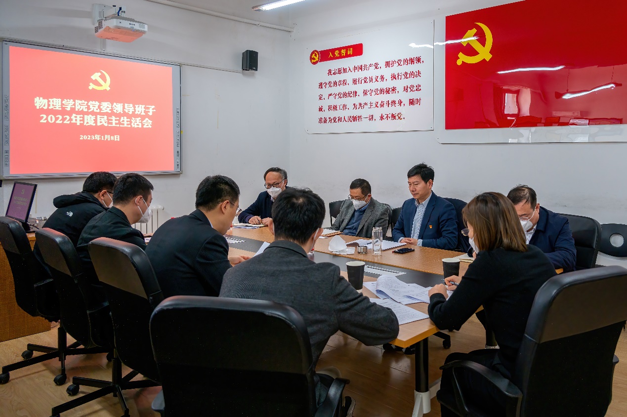 1月8日上午,物理学院召开2022年度领导班子民主生活会。联系学院校领导、学校党委常委、副校长朱方伟到会指导,学院班子全体党员同志参会并发言,学院院长赵纪军列席会议,学院党委书记王正汹主持会议。