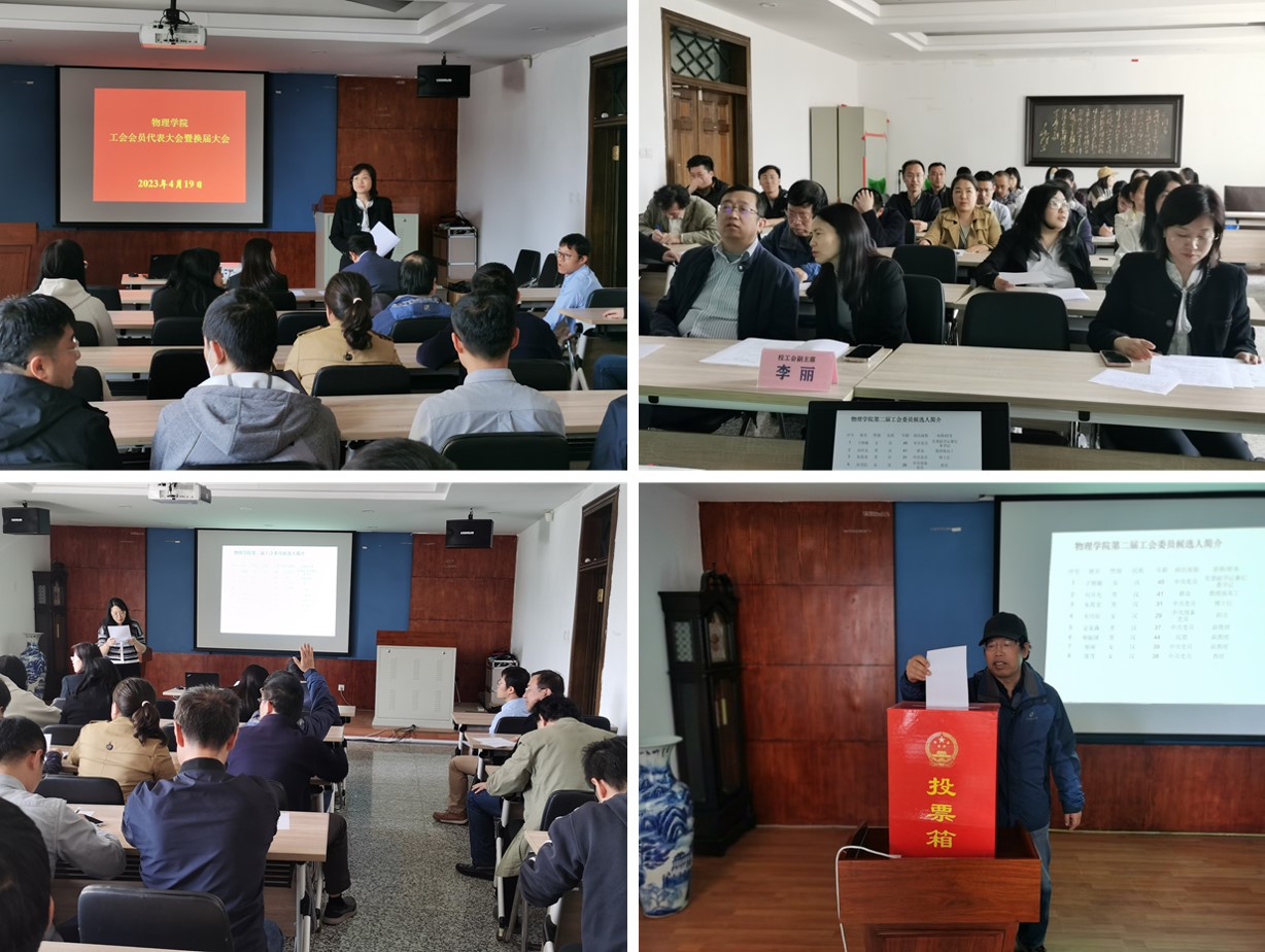 2023年4月19日下午,院工会换届大会在学院办公楼322会议室举行。校工会副主席李丽、物理学院院长赵纪军出席会议,副院长于长水、上届工会主席荆振国等共37名工会会员代表参加会议,会议由学院党委副书记兼纪委书记于艳敏主持。