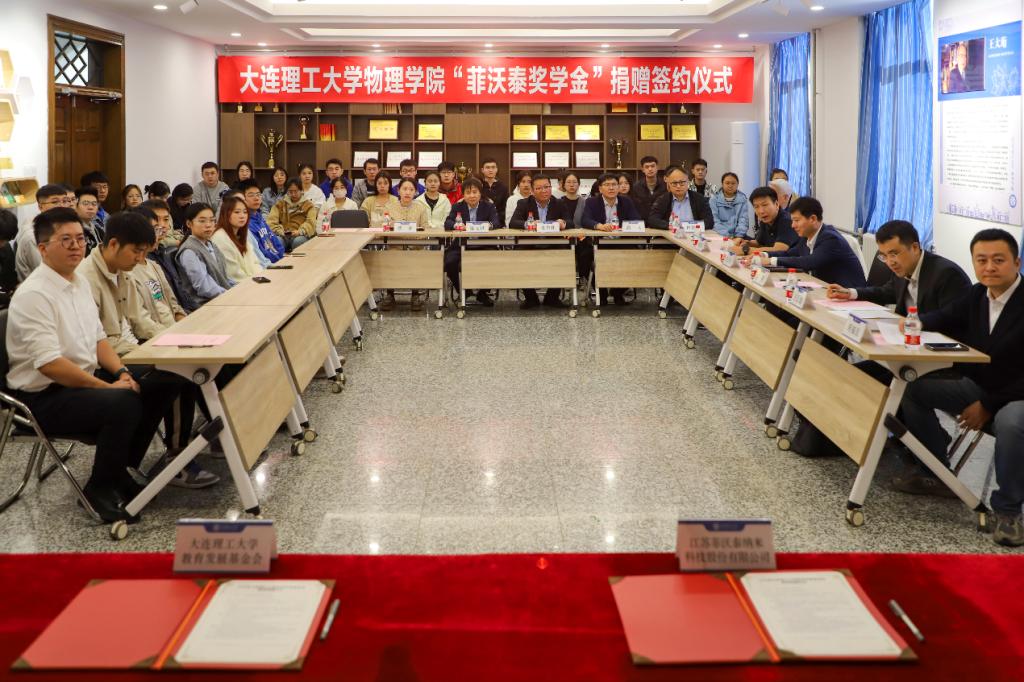 10月16日下午,开云手机站登录入口“菲沃泰奖学金”捐赠签约仪式在物理学院顺利举行。学校党委常委、副校长朱方伟,江苏菲沃泰纳米科技股份有限公司董事长宗坚出席仪式。江苏菲沃泰纳米科技股份有限公司(以下简称“菲沃泰”)在开云手机站登录入口设立“菲沃泰奖学金”。国内合作与联络处处长、教育发展基金会秘书长杨克旭,物理学院党委书记王正汹,学校相关职能部门负责人以及物理学院教师代表、学生代表参加仪式。仪式由物理学院党委副书记、副院长周福良主持。