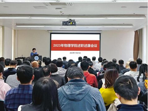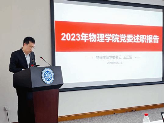 物理学院党委书记、院长王正汹代表学院党政班子作了2023年物理学院党委、行政述职报告,其他领导班子成员均做了书面述职。