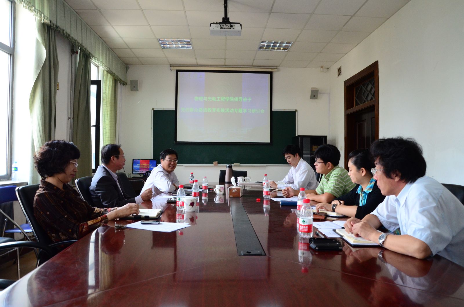9月28日上午,物理与光电工程学院党的群众路线教育实践活动领导班子专题学习研讨会在物理学院425会议室举行。物理与光电工程学院全体领导班子成员结合党的群众路线教育实践活动第一阶段学习情况进行交流研讨,学校群众路线教育实践活动第五督导组李铮同志参加了会议。