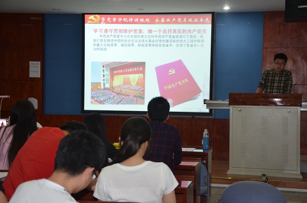 韩道满同志从党章的基本概念和地位作用、学习贯彻党章的重要现实意义和坚决贯彻执行党章,切实增强党的纪律意识三个方面带领大家进行党章的学习。