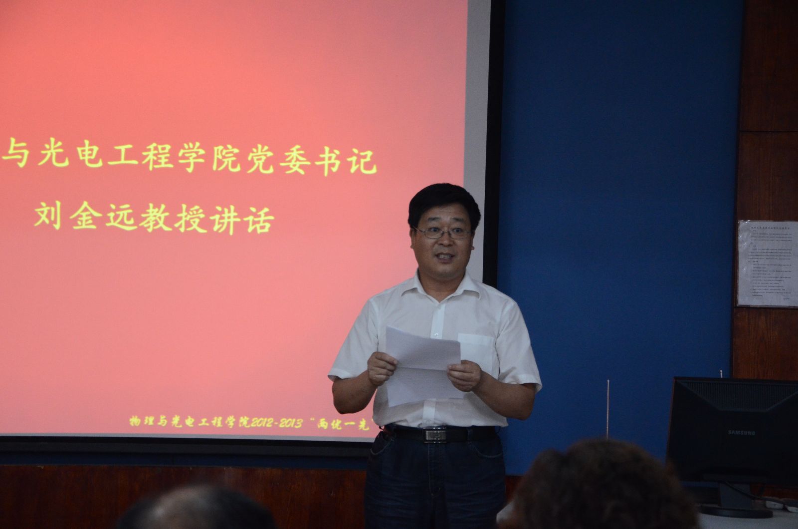 物理与光电工程学院党委书记刘金远同志,学院副院长兼副书记常亮同志,学院副书记兼副院长杨木同志,学院党委委员白亦真同志、陈茂笃同志、刘昱同志、于艳敏同志,作为嘉宾出席表彰大会。参加大会的还有学院受表彰的先进党支部代表、优秀共产党员、优秀党务工作者,准备面向党旗宣誓的预备党员同志,学院各党支部党员代表同志。表彰大会由学院党委组织员兼学生工作办公室主任李一鸣主持。
