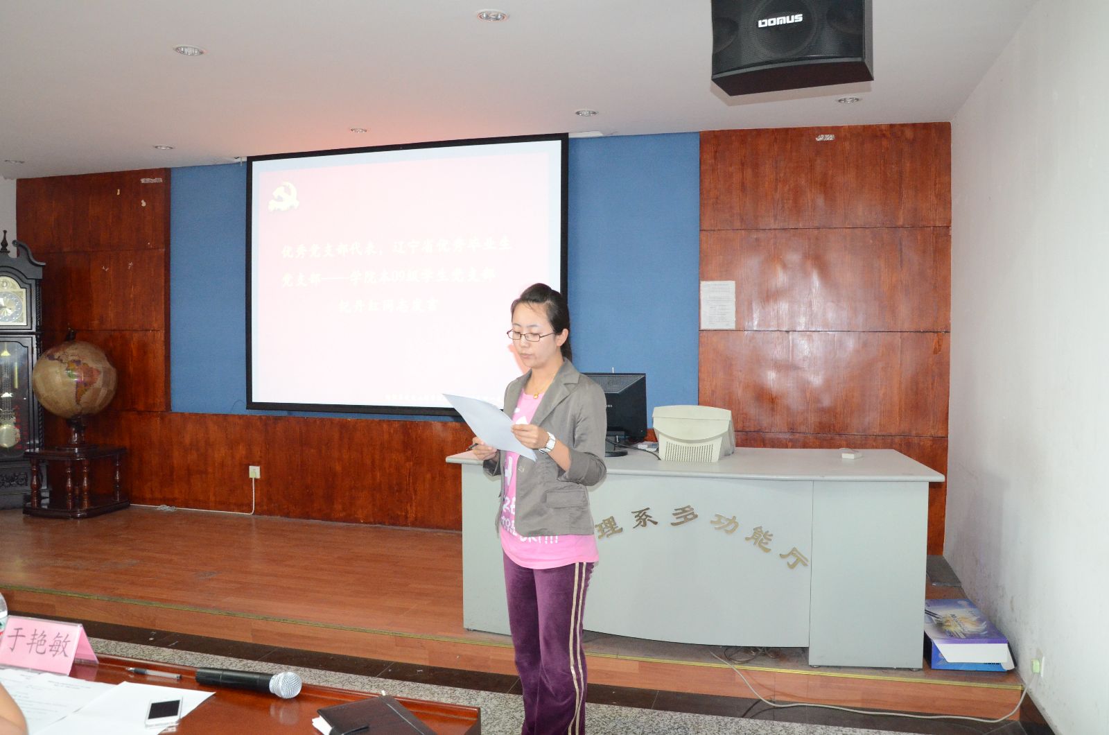 辽宁省优秀毕业生党支部书记、2009级学生辅导员纪丹红同志讲述了本09—学生党支部的先进事迹,汇报支部三年建设情况;学院办公室主任于艳敏同志代表优秀党务工作者发言,结合学校基层教工党支部书记培训班的理论教学与实践教学体会,阐释了井冈山精神以及如何将井冈山精神融入到日常党务工作中去。