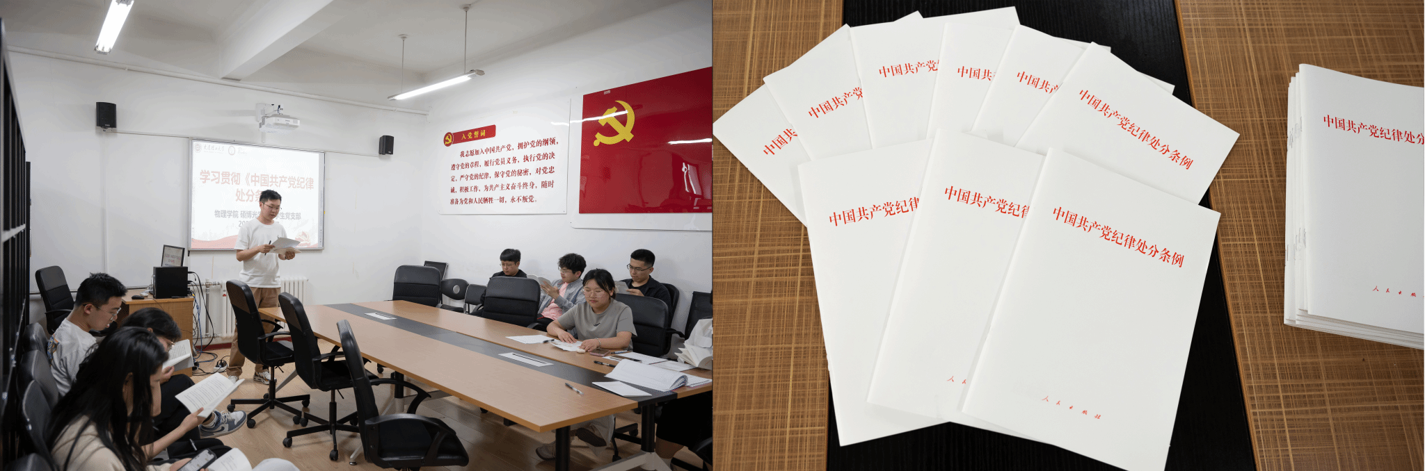 为进一步加强基层组织建设,提升党员政治理论水平,增强党员党性修养,物理学院硕博光学第二学生党支部于2024年5月30日晚六点在物理楼422会议室成功召开党员大会。大会内容包括讨论接收中共预备党员及“学习贯彻《中国共产党纪律处分条例》”党课两部分。会议由党支部书记田杰同志主持,支部全体党员参会。
