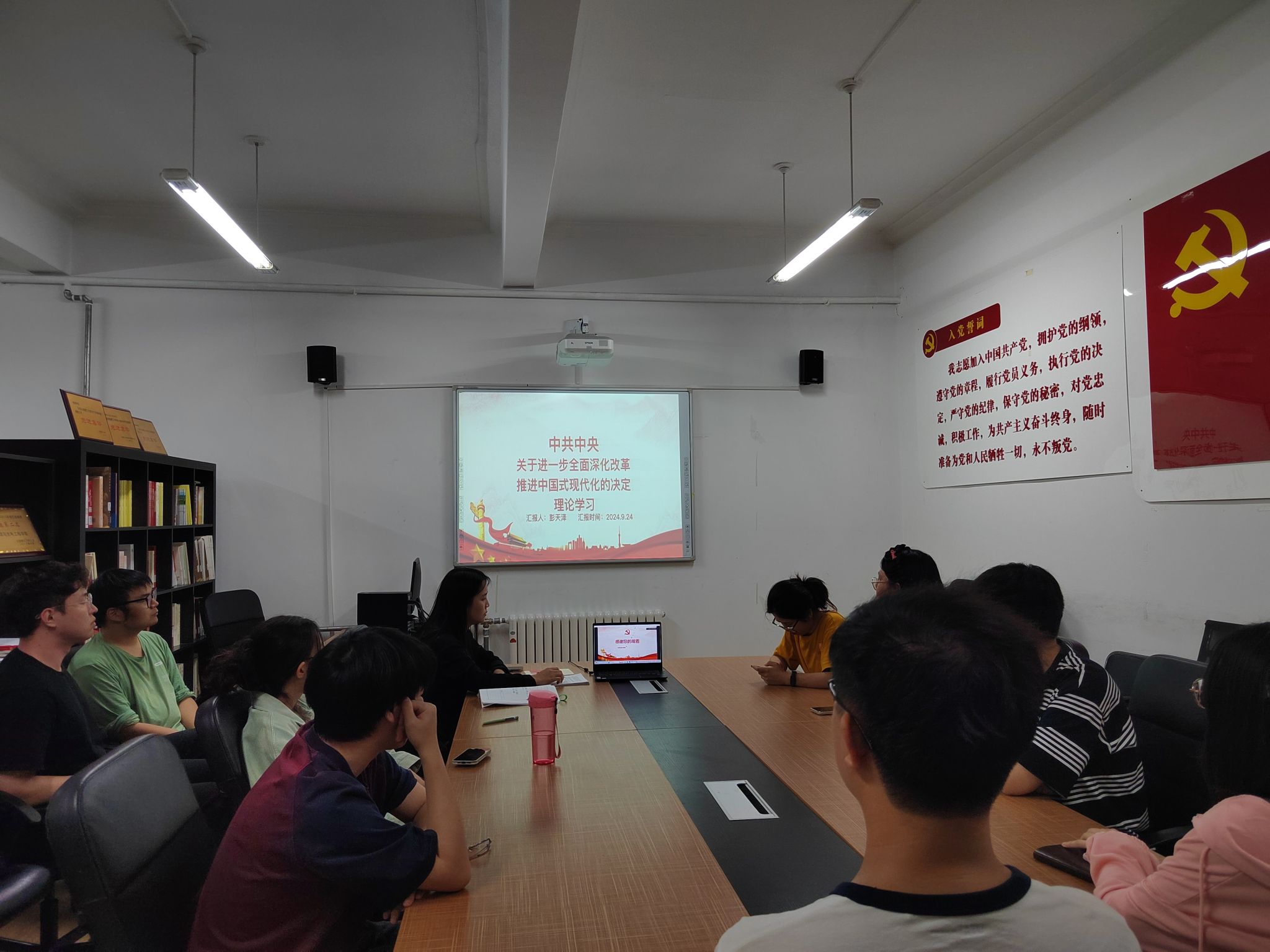 为加强基层党组织建设,引导支部同志向优秀党员学习,传递榜样力量,物理学院硕博原子与分子学生党支部于2024年9月24日在物理楼422会议室开展“践行初心使命,传递榜样力量”主题党日活动,本次活动邀请物理学院优秀党员彭天泽同志带领支部成员深入学习党的二十届三中全会精神。党支部书记周佳佳同志主持本次活动,支部全体党员及团员参会。