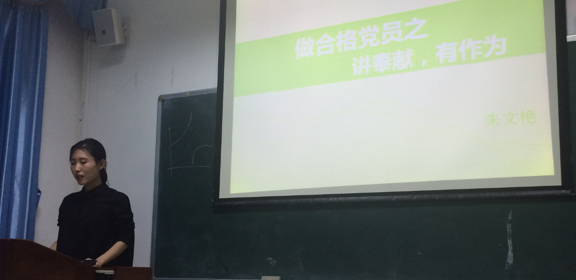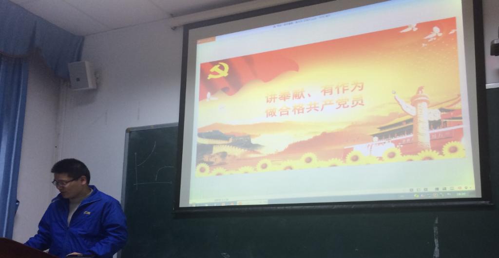 朱文艳同志则分别从讲奉献、有作为的时代含义和共产党员如何讲奉献、有作为两方面出发,分享了学习心得。作为一名党员,我们一定要时刻牢记和践行党的全心全意为人民服务的根本宗旨,真正做到不忘初心,方得始终。王英杰同志以身边的同志“中国大学生自强之星——韩道满”为榜样,提出我们应该有理想、有进取心,努力奋斗,实现人生价值。李佳同志与其他党员同志一起重温了入党誓词,强调了做一名合格的共产党员必备的基本素质便是责任与担当,以及责任与担当的重要性,并且如何在现实生活中去落实。