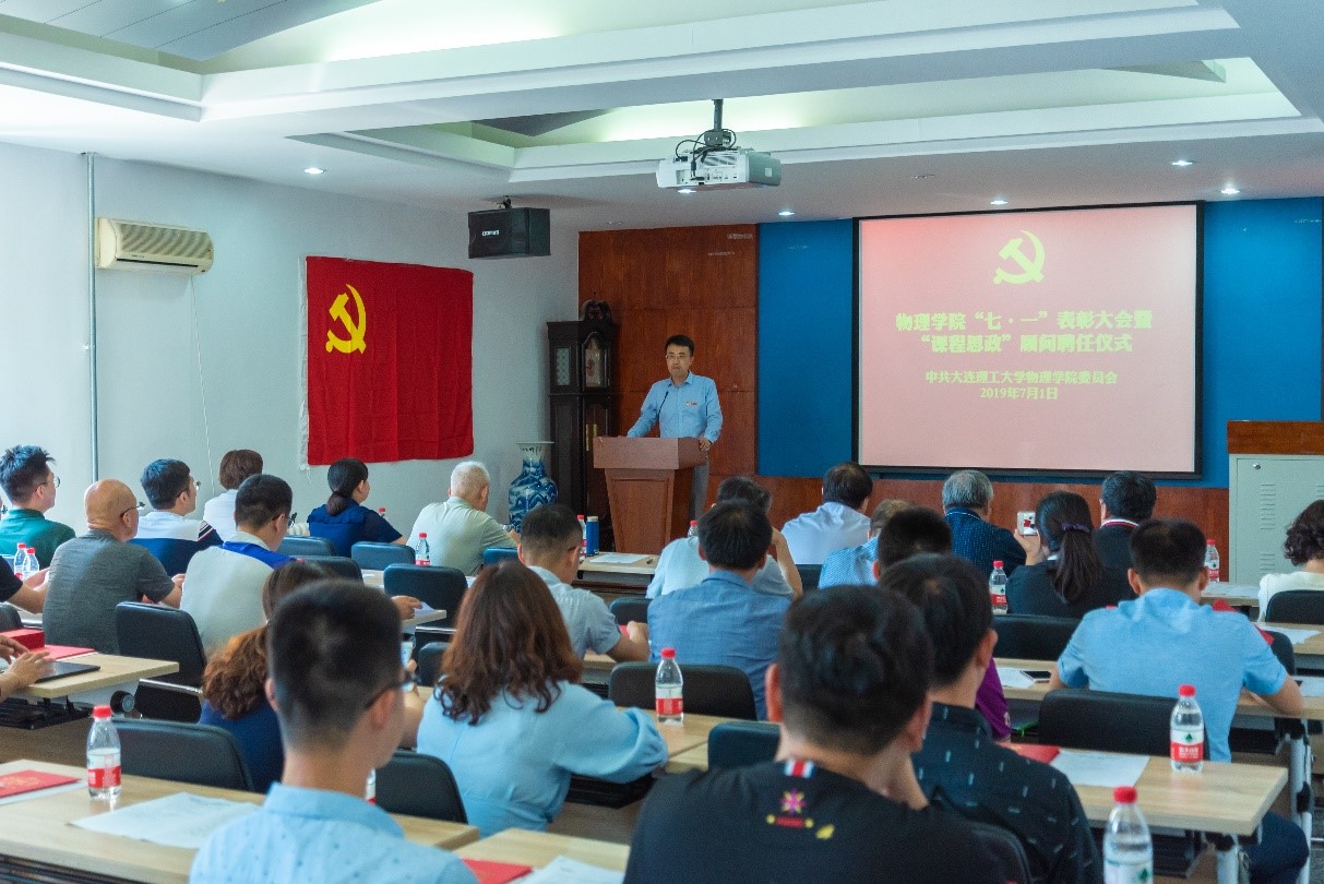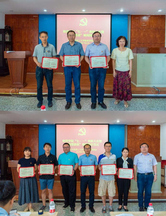 7月1日下午,学院党委在“七·一”表彰大会后举行“课程思政”顾问聘任仪式。会上学院党委首先对近年来在“课程思政”方面做出突出贡献的优秀教师进行表彰,共表彰物理学院“课程思政”杰出教师7人、物理学院“课程思政”青年骨干教师9人。