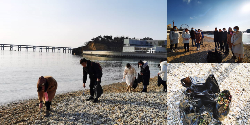 志愿服务期间,大家仔细搜索散落在海滩上的烟头、塑料袋和饮料瓶等垃圾。和煦的海风伴着冬日的暖阳,大家体验到了大自然馈赠的美丽海景,也体会到了守护这醉人景色的愉悦。
