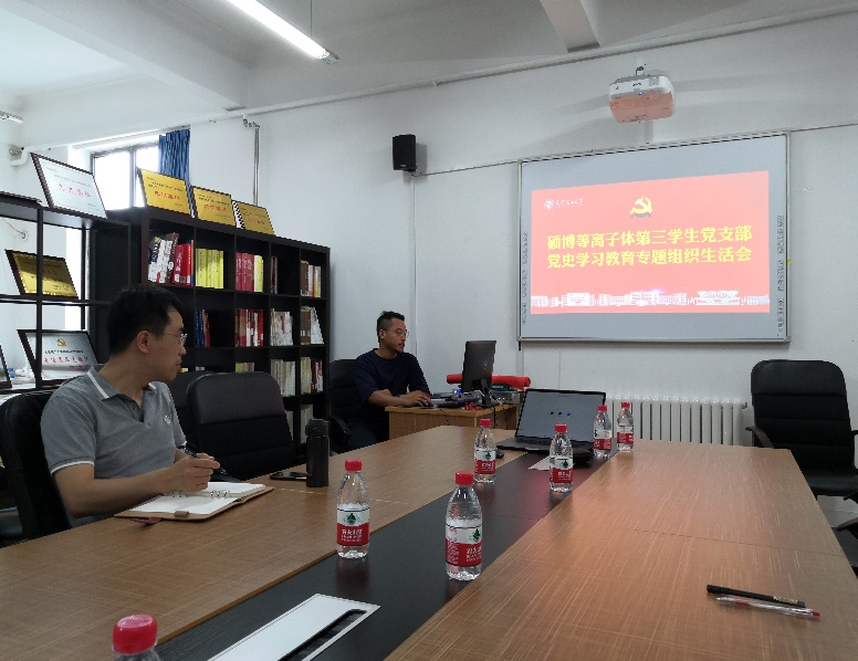 为深入学习贯彻落实习近平总书记在庆祝中国共产党成立100周年大会上的重要讲话精神,巩固党史学习教育在全体支部党员的学习效果。7月20日上午,物理学院硕博等离子体第三学生党支部党史学习教育专题组织生活会顺利召开。
