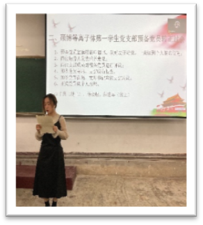 会议第三项:党支部书记崔紫宵同志从支部委员工作职责、政治理论学习制度、民主评议党员制度、“三会一课”制度、发展党员工作制度、入党积极分子培养考核制度等多项支部建设组织条例出发,一方面注重调动每一位党员的积极性和热情,为支部发展出力献策;另一方面明确了日后支部工作的原则及重点,为支部工作的有序开展奠定了基础。