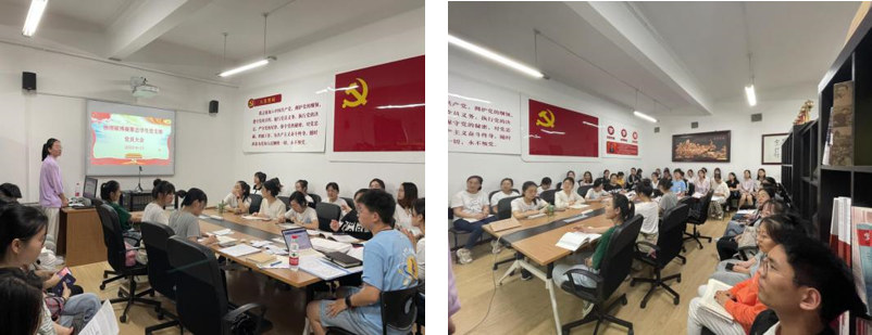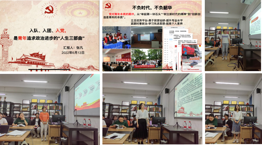 值得一提的是,本次发展党员工作,在严格按照党员发展规范进行的前提下,经过支委会酝酿,报上级党委批准,将各发展阶段流程中增加了被培养人展示近期工作、生活、思想、学习等情况的环节。《入队、入团、入党,是青年追求政治进步的“人生三部曲”》的主题报告;一张张党团活动志愿活动的照片让人颇为震撼,耳目一新。本次创新的目的在于一方面以党员大会为时间点,引导被培养人思考接受组织培养期间,参与组织生活情况怎么样,为师生办实事落实到不到位,对照党员标准做到了哪些、还差多少;另一方面,希望以此加强支部党员与党员之间、党员与群众之间的联系,增强支部凝聚力。