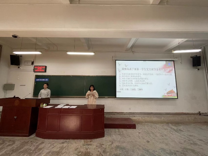 会议第五项,支部书记崔紫宵同志重申和明确支部组织建设的条例和吸纳积极分子入党的要求。从端正入党动机、入党条件和相关材料撰写注意事项等方面展开讲述,重点介绍了入党前的思想准备、撰写材料的注意事项以及各阶段的考察标准。同学们加深了对党的了解和认识,树立了正确的入党动机,纷纷表示会在思想上积极上进,争取早日加入党组织。