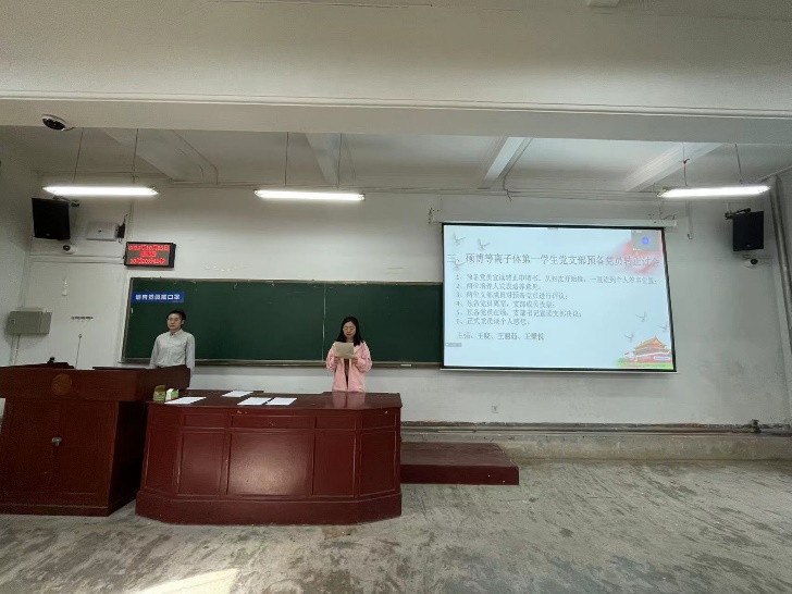 根据党支部发展党员工作计划,经上级党委预审同意,2022年10月23日,物理学院硕博等离子体第一学生党支部在三束四号楼408会议室组织召开党员大会,由于疫情原因,部分党员在线上通过腾讯会议参加会议。本次会议应到34人,实到32人,主要包括五项议程:会议第一项由新生党员武佳、安苑静、王馨悦做自我介绍;会议第二项由党支部书记崔紫宵带领党员学习《习近平谈治国理政》第四卷;会议第三项讨论王强、王晓、王丽茹和王馨悦同志按期转正事宜;会议第四项进行支委会补充选举;会议第五项支部书记崔紫宵同志重申和明确支部组织建设的条例和吸纳积极分子入党的要求。