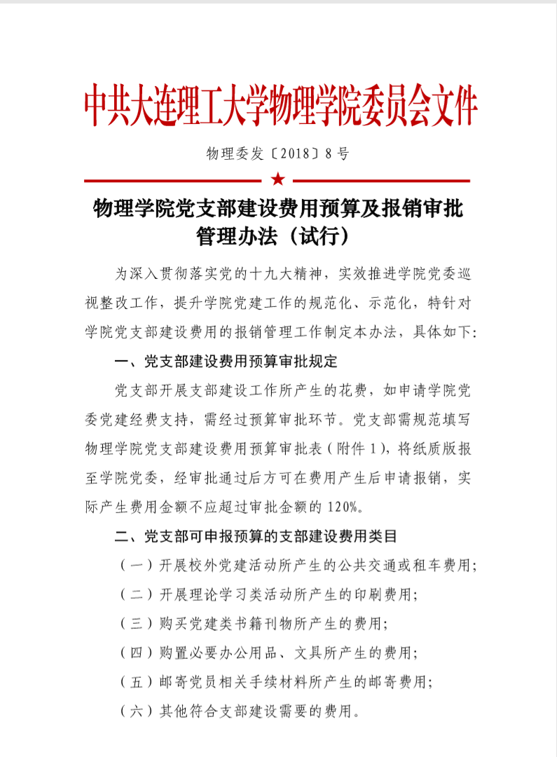 物理委发〔2018〕8号-物理学院党支部建设费用预算及报销审批管理办法(试行).pdf