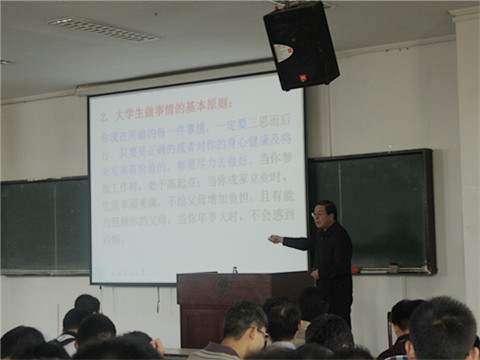 丛书林教授从“当下我们面临的问题”“大学生应该做的事情”以及“如何做人”这三个问题展开了叙述,开篇即讲述了大一新生所面临的问题,通过对比高中和大学的不同之处,强调问题的根本是没有树立一个更高的目标。并表示,要更好地适应大学生活,不仅要能够正确处理自己与他人及群体之间的关系,还要积极参加公益活动,努力塑造一个对社会有所贡献的更优秀的自己。丛教授指出大学生应该做的事情包括确立自己的目标、学好基础课和专业课知识、提高自己分析问题与解决问题的能力、创新能力和自我控制能力等等,要为自己创造一个足够大的发展空间。他还特别强调大学学习应摆脱高中做题的模式,这就意味着要有一个更好的学习能力,而拥有良好的自我控制能力则是把自己的命运把握在手里的关键。此外,丛教授也传授给大家“有所得必有所失,有所失应有所得”“‘不劳而获’终究没有多少收获,不要投机取巧”“不想出力的代价往往是出更多的力”等许多人生哲理,告诫同学们做事一定要脚踏实地,在大学期间要努力做好自己。