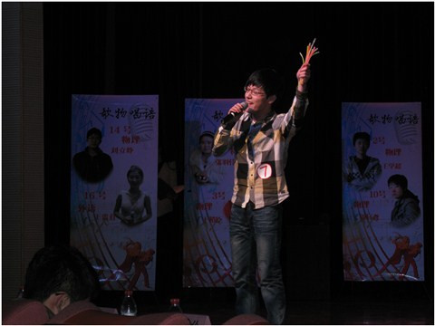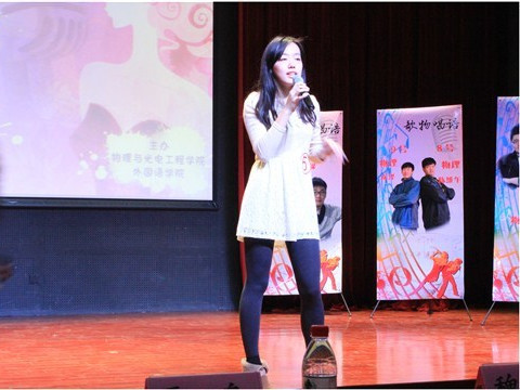 大赛第一项是由我院健美操队员们为大家带来的富有活力的健美操表演。随后,在预赛中成功晋级的十六位选手依次在舞台上展示各自的歌喉。其中,我院12级李佳翰,赵沁华等,以及我院13级新生张羽佳,于稍臣等各显其能。外国语学院的“花茶”组合以及王贵荭等人也纷纷上台演唱拿手歌曲。