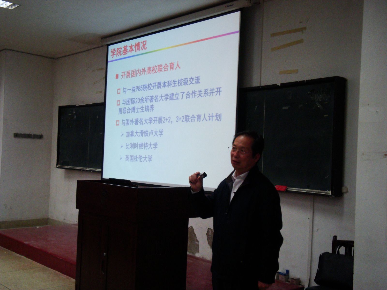 在近两个小时的时间里,院长赵明山教授首先从院史院情入手,结合我院三个本科生专业与“两系一中心”特色,为新生同学们全面讲解学院的创建与发展历史、本科生教育教学、本科毕业发展方向以及我院研究生专业设置情况等多方面内容,让新生们对学院的概况形成清晰的印象,对学院的特点和特色有了深入的了解,强化了新生们的爱校爱院意识。接下来,赵院长结合多年的工作实际,对全体新生就大学学习与人生目标提出以下希望:树立人生理想,明确奋斗目标;夯实理论基础,培养专业兴趣;学会独立思考,提升学习能力;做好大学当下,成就辉煌未来。之后,赵明山教授用了比较大的篇幅,结合光子学与光通信的科学前沿知识,为新生同学们介绍理论物理、粒子物理与原子核物理、原子与分子物理、等离子体物理、凝聚态物理、光学(光子学)、声学、无线电物理等物理学科21世纪将风光如何。赵院长向大家介绍了最新的科研成果和科技需求,最热的理论前沿和物理问题,同学们听得如痴如醉,热血沸腾,深深地被物理的学科魅力和光明未来所折服,大大增强了学生们的专业认同感。赵院长强调,同学们在大学中一定要利用学校、学院提供平台,走进实验室,参与各类科研项目,物理学界、我们的祖国乃至全世界都迫切需要具有物理学理论水平和应用能力的青年人才。选择物理学科,在21世纪大有所为!