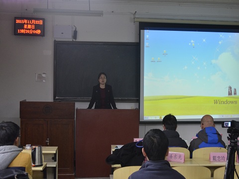 一开场,主持人介绍竞赛流程及要求。本次比赛分两组分别在两个教室同时进行,比赛形式严格按照学术答辩的形式进行,分陈述和提问两个环节。