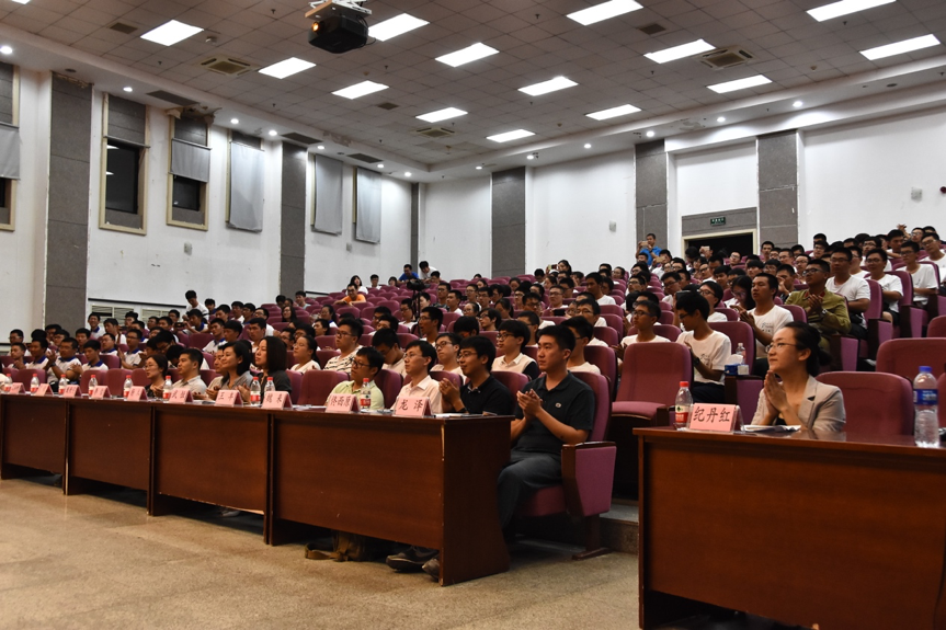 9月14日晚,秋高气爽,凉风习习。而研究生教育楼报告厅内热情洋溢,物理学院2017级队新生诗朗比赛就在这里如火如荼地进行。出席本次比赛的嘉宾有学院党委副书记兼副院长、纪委书记、2017级队辅导员杨木老师,物理1701班班主任戴舒宇副教授,物理1702班班主任王丰副教授,物理1703班班主任张佼副教授,物大珩1701班班主任魏来副教授,物理中白1701班班主任李哲副教授,团委书记兼2015级辅导员纪丹红老师,2016级辅导员佟西原老师,2014级辅导员梁勇老师,2017级辅导员龙泽老师,军训教官夏林峰、姚成佳、方泽文,学院学生会主席兼团委副书记董新宇,团委常务副书记李睿意,团委组织部部长逄金鹏,17级队各班代理班长、代理团支书以及其他部长级学生干部。