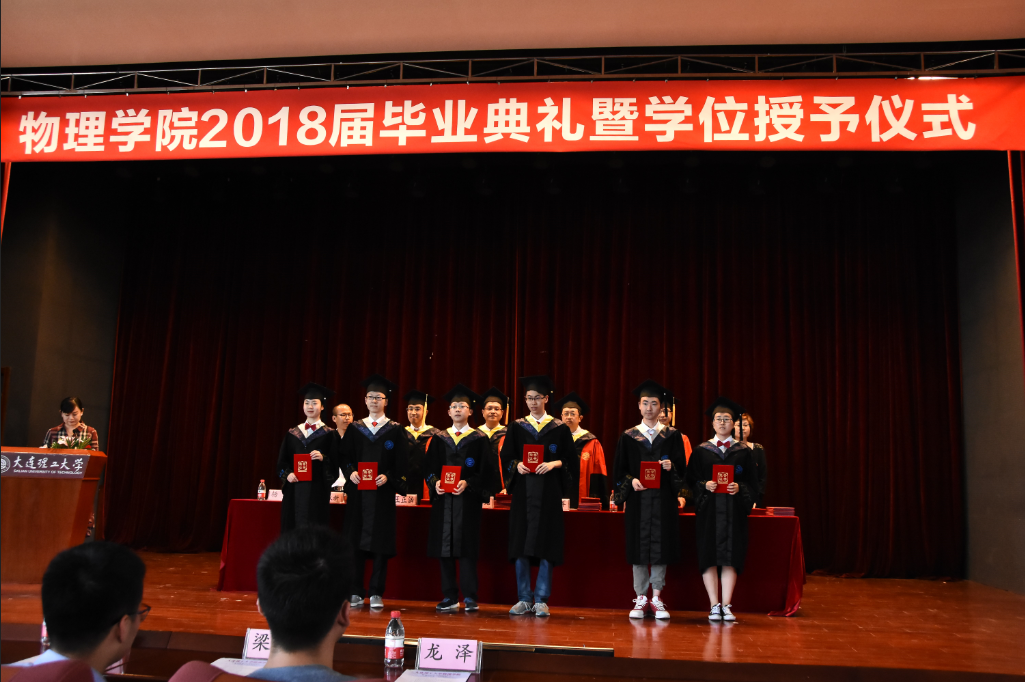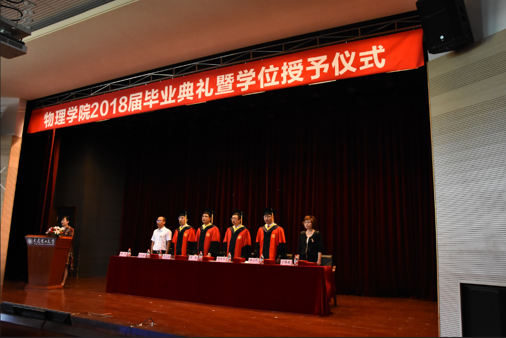 又值毕业季,物理学院266名学子即将离开熟悉的学习生活环境,踏上崭新的人生之路。6月21日上午10点,物理学院2018届毕业典礼暨学位授予仪式于综合教学二号楼B301百川报告厅圆满举行,到场的嘉宾有物理学院院长、博士生导师赵纪军教授,学院党委书记常亮,副院长、博士生导师徐立昕教授,副院长、博士生导师王正汹教授,国家优秀青年基金获得者刘永新教授,学院办公室主任于艳敏,2014级辅导员梁勇,学院团委书记、2015级辅导员纪丹红,2016级辅导员佟西原。本次仪式的主持人是学院党委副书记兼副院长杨木。