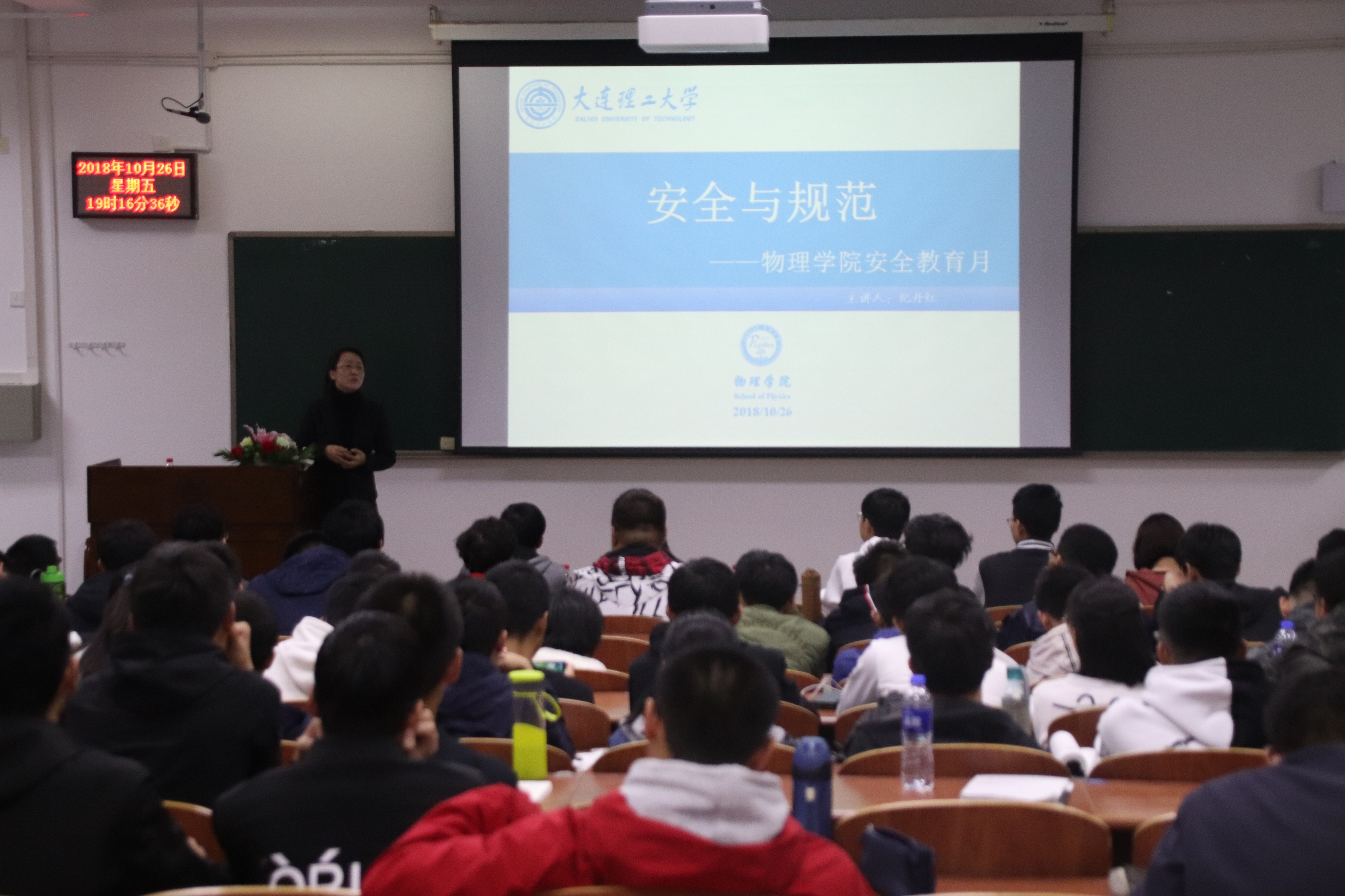 为了呼应2018年秋季学期我校“安全教育月”活动、提高学生的安全意识、防止出现安全隐患造成灾难,开云手机站登录入口于10月26号晚6点30分在综合教学二号楼B303举办主题为“安全与规范”的专题讲座。本次邀请物理学院团委书记纪丹红作为此次的主讲人。