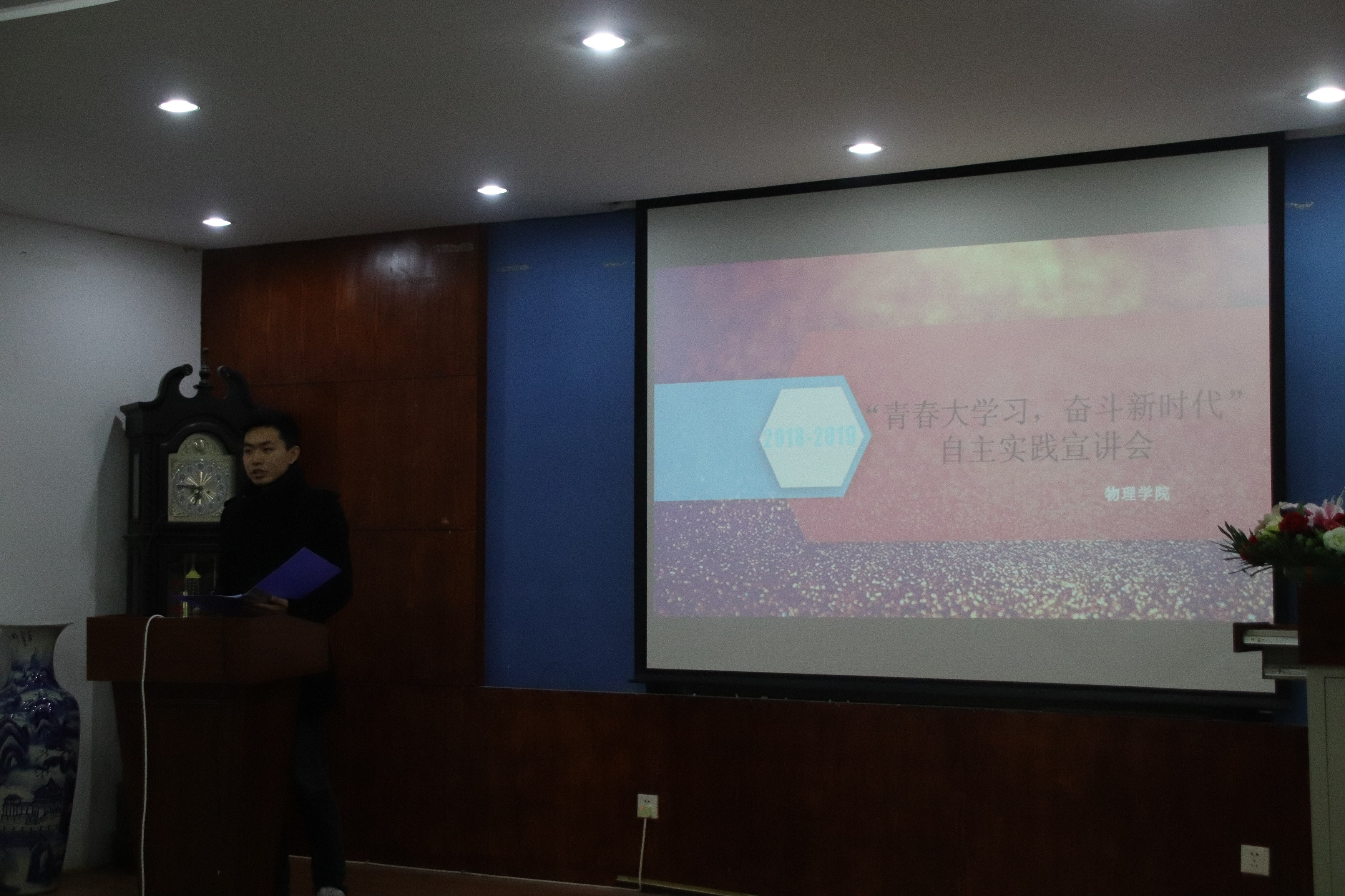 为推进实践月主题活动顺利开展,并响应学校号召,积极建设活力团支部,我校物理学院于11月19日晚上六点在物理系楼322教室开展2018-2019学年秋季第四期团校培训。出席本次培训的嘉宾有学生会主席兼团委副书记边于,团委常务副书记刘禹君,团委实践部部长李睿,团委组织部部长何浩。