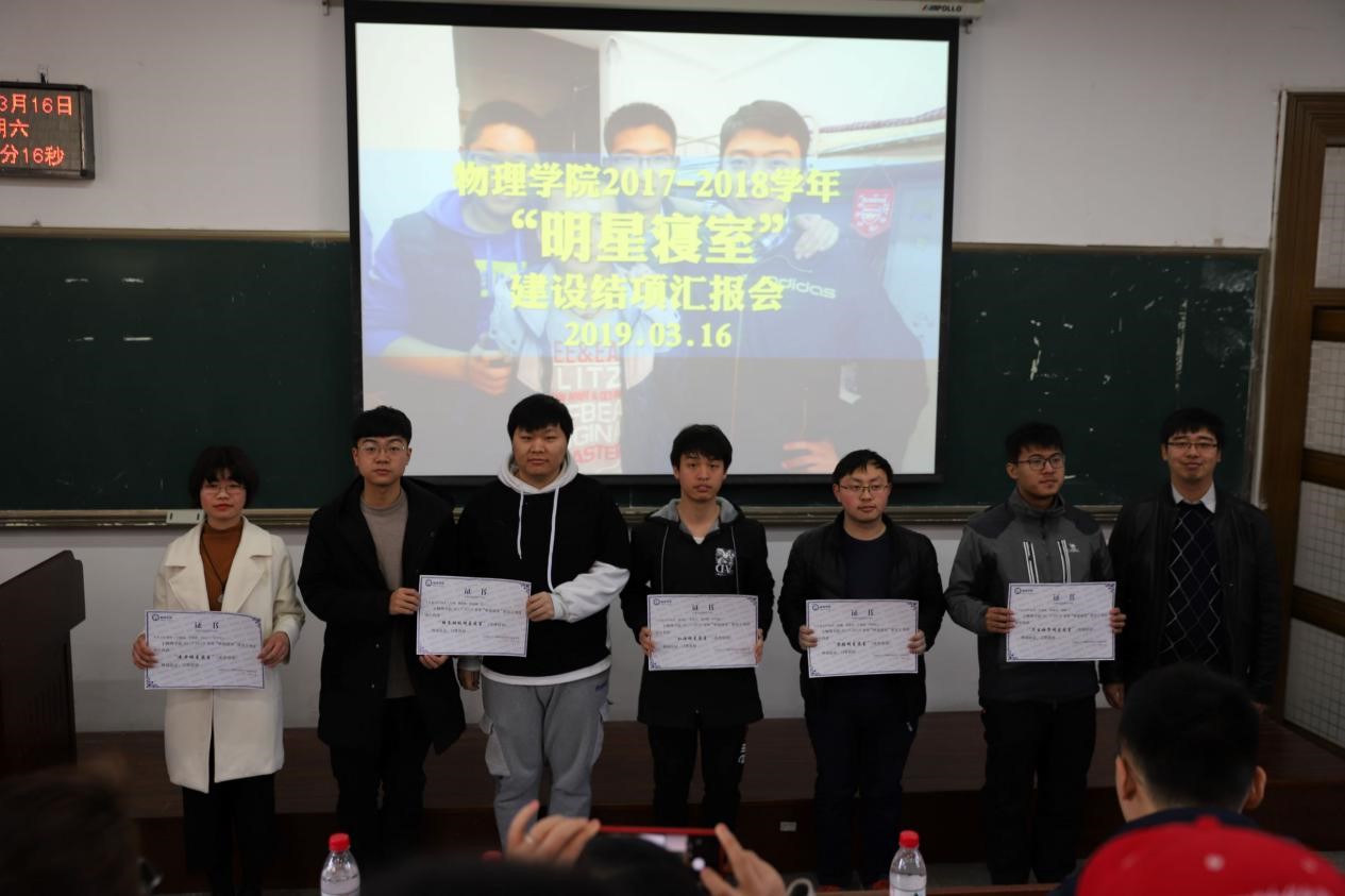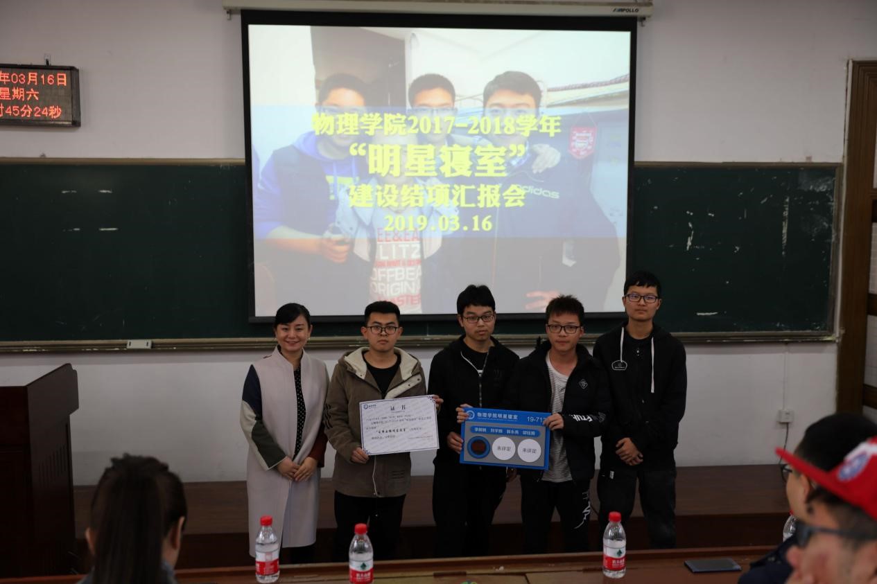 2013年以来,物理学院结合团体动力学理论,通过开展“明星寝室”建设立项工作等诸多举措,有效提升集体凝聚力、激发学生成长动力。近年来学院持续加大投入,一方面通过设计特色门牌和颁发证书提升优秀寝室的荣誉感,一方面在优秀班级、优秀学生评比中加大对寝室工作的考量比重,同时每年为通过结项的“明星寝室”提供建设基金。2014年之后,学院每年都以数量递增的趋势涌现全深造的“学霸寝室”,2018届毕业生中“全中共党员、全保送名校”的“姐妹寝”,是学院寝室建设工作的又一个亮点。
