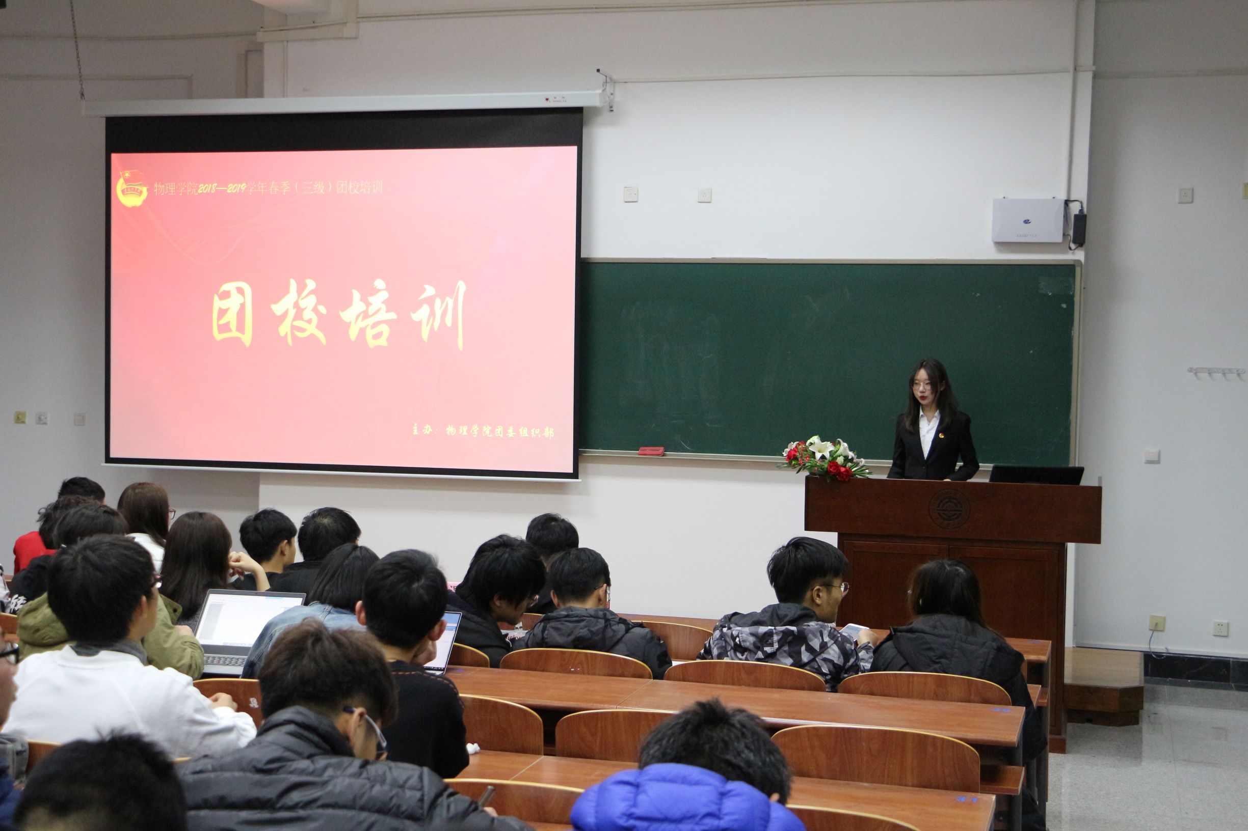 为宣传无偿献血,弘扬雷锋精神,进一步提高基层团学干部的工作水平和团员青年的能力,提高学生干部的思想素质、政治素质、工作能力、学习能力及组织能力,物理学院2018-2019学年春季学期第一期团校于3月22日晚6点在综合教学二号楼B506教室准时开展。本次团校培训到场的嘉宾有物理学院青年红十字会副会长王栋梁,志愿者协会副会长温昕,以及物理学院团学社各部门部长。