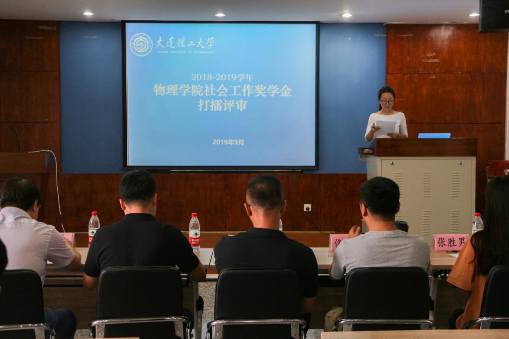 2019年9月4日下午2点,物理学院在物理学院系楼322举办社会工作奖学金答辩会。校体育场馆中心主任、物1901班思政班主任张磊老师,物理学院副院长于长水教授,学院副书记兼副院长、2017级辅导员周福良老师,物1801班专业班主任荆振国副教授,党委组织员兼2016级辅导员佟西原老师,2018级辅导员张胜男老师担任此次答辩会的评委。会议由学院学办主任、2019级辅导员纪丹红老师主持。