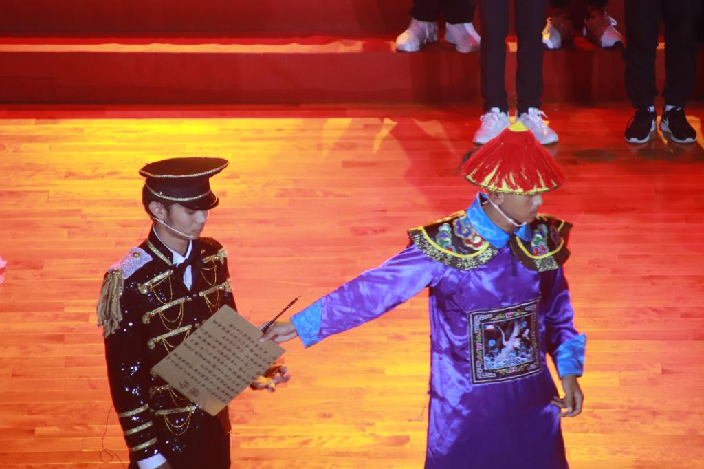 应物1901团支部的诗歌以香港回归为主题,讲述百余年来香港与大陆的分离与重聚,诗歌以两个小剧的形式呈现。第一个小剧重现当年签订《南京条约》的屈辱场景。清朝大臣不愿却又不得不同意英国索要香港岛的要求,大臣无奈的眼神传达出“弱国无外交”的事实。第二个小剧是邓小平爷爷在香港回归前夕表达出去香港的土地上走走的愿望,邓小平爷爷那时的欣喜之情同每一个中国人一样溢于言表。两个小剧相互呼应,充分展示出中国百余年来的变化和发展,从一穷二白、任人欺凌到崛起于世界东方,从香港喊出:“回家!我要回家!”的渴望到祖国喊出:“香港!祖国接你回家!”的骄傲。这香港与祖国的对话,像极孩子与母亲久别重逢时的情景,那份真挚而热烈的情感让在场的每个人都为之动容。