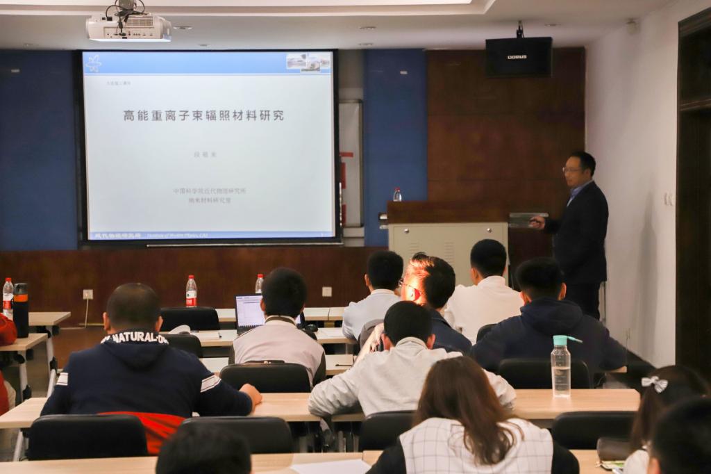 2019年10月11日15:30,中国科学院近代物理所菁英班宣讲在开云手机站登录入口系楼322教室成功举办。莅临现场的嘉宾是中国科学院近代物理所赵行波研究员和段敬来研究员。