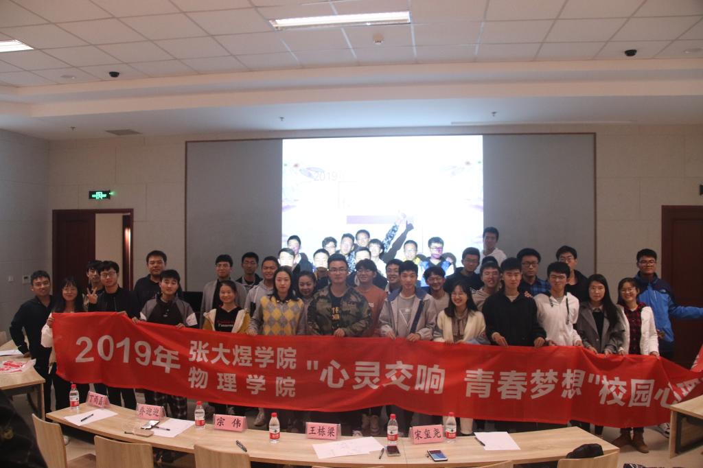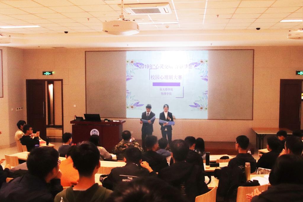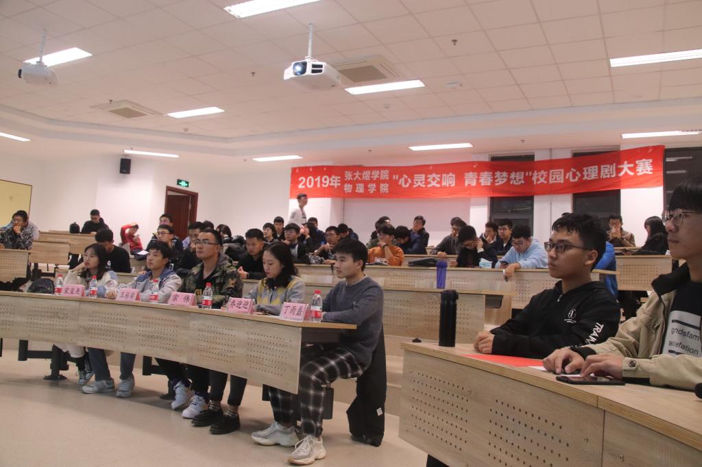 2019年10月26日晚6点,物理学院与张大煜学院联合举办的校园心理剧大赛在经济管理学院B105顺利举行。出席评委有张大煜学院团委书记兼2019级辅导员宗伟,张大煜学院学生工作办公室助理辅导员乔迎迎,物理学院团委常务副书记宋玺尧,物理学院学生会会长王栋梁,物理学院自强社社长丁雨磊。