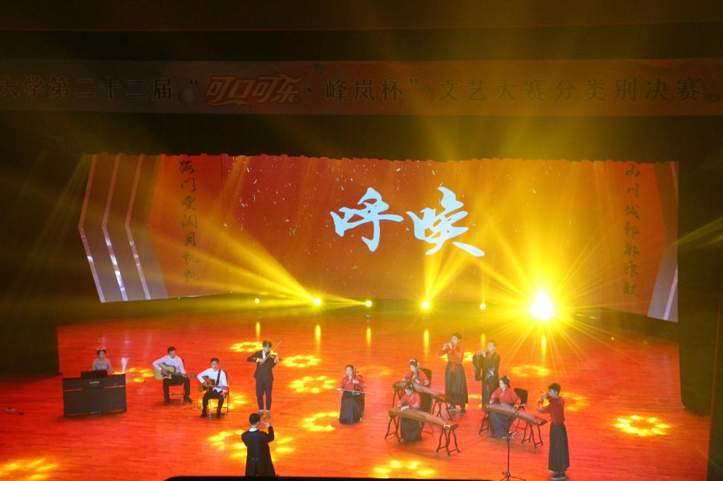巅上新峰,霓漫晴岚,2019年11月24日晚19:00点,大连理工大学第二十二届“峰岚杯”文艺大赛“声乐类、舞蹈类、器乐类”决赛于新大学生活动中心如期举行。本届“峰岚杯”物理学院为大家带来的是精彩的大型器乐表演《启明》,并且最终以9.11分的成绩获得器乐类比赛的第二名。