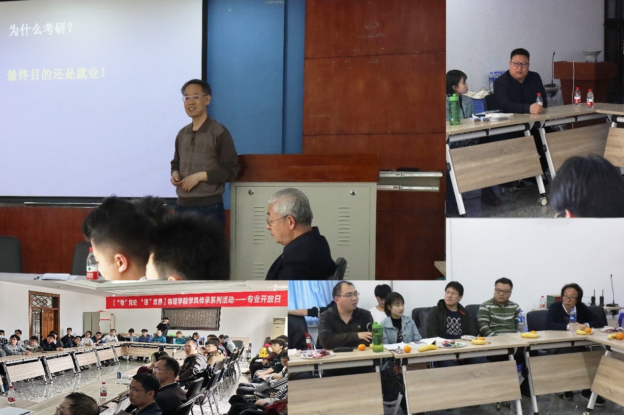 本次专业开放日活动中,物理学院重量级学术大咖热情参与,为同学们带来了一场学术盛宴。其中,物理学院院长赵纪军教授就和同学们交流分享凝聚态物理详细情况,还和同学们讲解研究专业选择的重要性,他告诉大家要找到一个将来有发展的领域,要清楚方向、选对方向!另外,物理学院副院长陈茂笃老师分享了研究生求学中的几个关键问题,包括为什么考研、读研的最终目的是为了就业等等;以及作为一个合格的学生需具备的素质,首先要品德好,最后才是智商,让同学们深刻体会到科研必先立德。物理学院副院长于长水老师还向同学们解释理论物理框架下相关知识,并对物理理论的方法论进行详细的介绍和讲解,同学们纷纷表示受益匪浅,心中科研报国的澎湃之情在不断地涌动喷发。