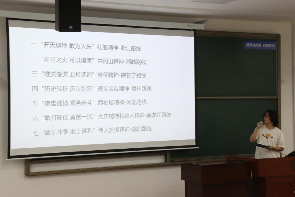会议开始,邢静文同学首先介绍会议的各项注意事项。然后由韩振琦同学为大家介绍了具体的活动内容:第一步,校团委增设了校内实践环节,依托七一校园文化展各实践团需要到文化展位拍照打卡。第二步,校外实践环节,各实践团以实际行动祝建党百年,7条线路4大主题,包括“开天辟地-敢为人先红船精神-浙江路线”、“星星之火,可以燎原,井冈山-湘贛路线”等,还介绍了校外实践的四大主题,分别是“学党史,追寻红色足迹”、“悟思想,讲好中国故事”、“办实事,贡献青春力量”、“开新局,擘画宏伟蓝图”。在此之后,韩振琦还为同学们讲解了暑期实践活动立项的注意事项,包括立项,结项,评优等各种事件的基本流程,提醒同学们注意健康承诺书的撰写等。在最后,由郭沛同学为大家解决疑惑,讲解可能出现的问题,同学们踊跃提问,例如“是否可以跨院系组队”等问题,并都得到了准确详实的解答。